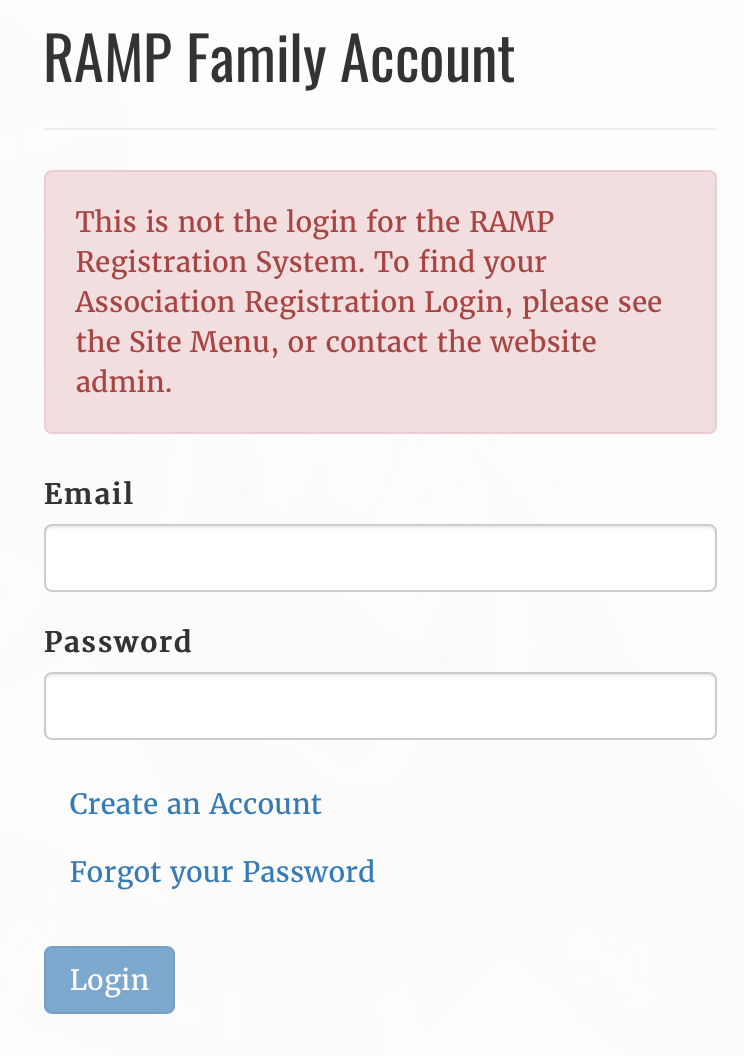 1. Find the RAMP login on the bottom of the home page, or at the bottom of your team page.